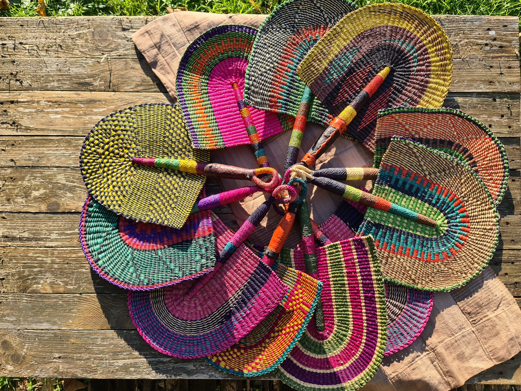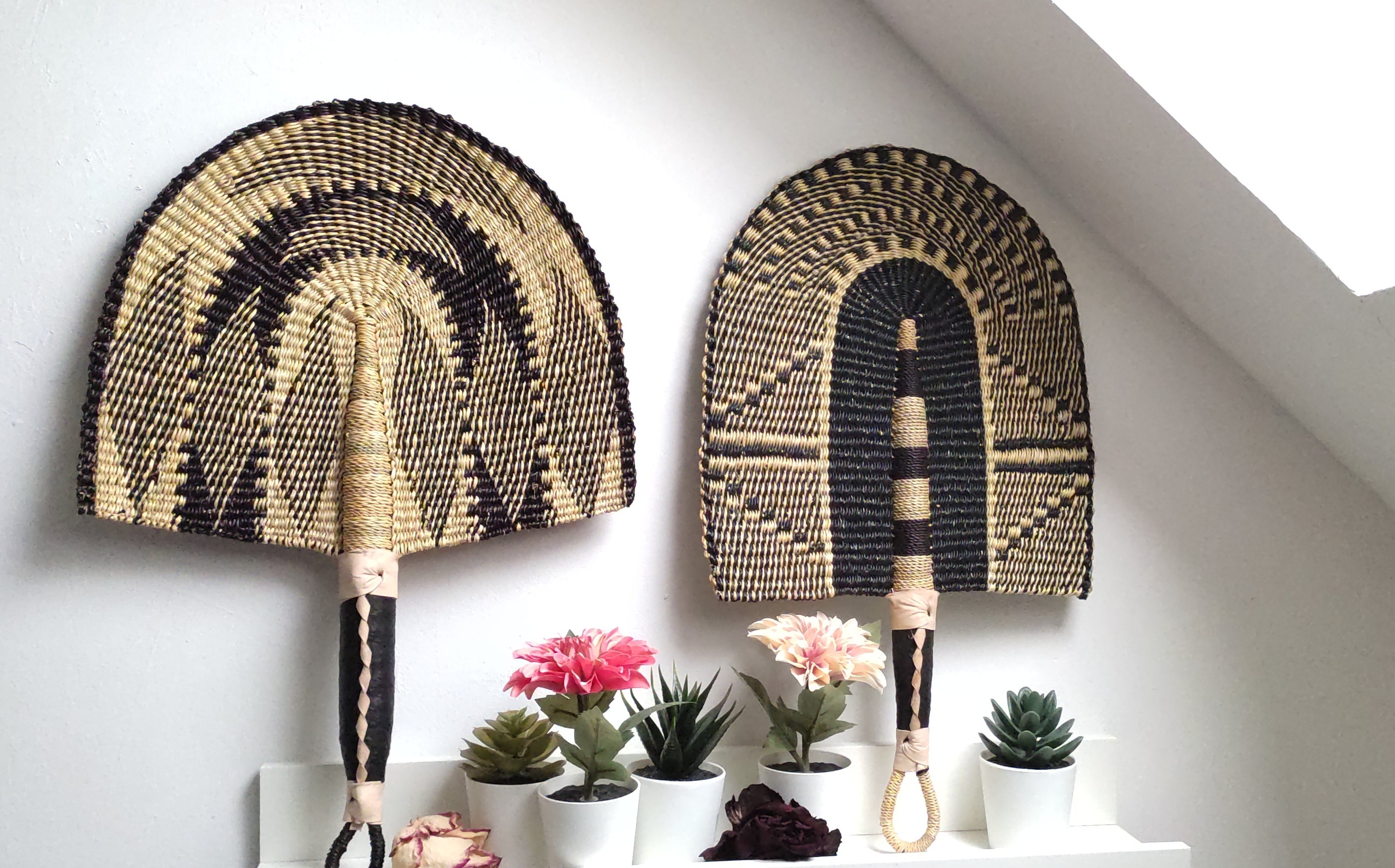 Ces éventails africains en paille de la région de la Bolgatanga, sont souvent détournés à raison pour décorer nos murs, pour une décoration ethnique et bohème chic.. Je sélectionne ou imagine régulièrement de nouveaux coloris selon les tendances du moment ou nos coups de coeur pour une nouvelle teinte.