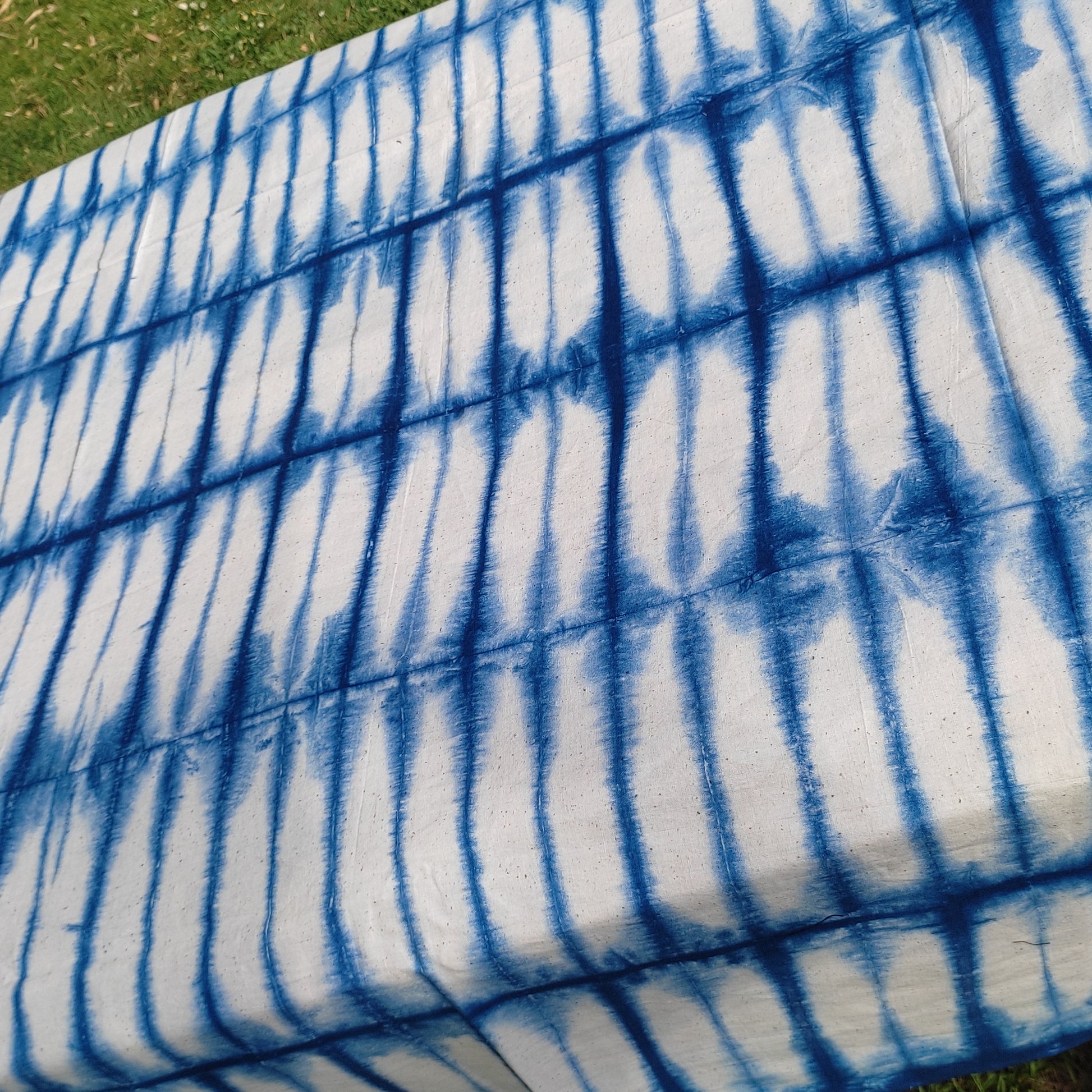 Jolie nappe de table en coton et teinté à la main en mode tie and dye à la méthode ouest africaine.